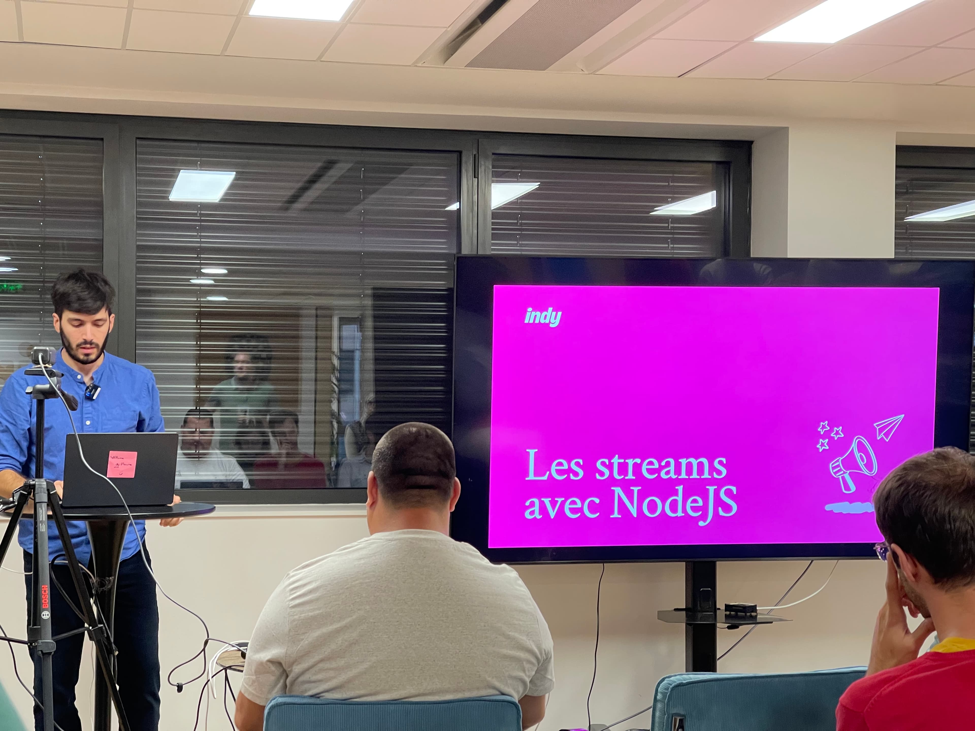 Dans ce talk, nous explorerons les streams en Node.js à travers une session de pseudo live coding. Je présenterai du code déjà préparé, en expliquant les résultats obtenus et en illustrant les concepts clés. Nous aborderons les différents types de streams (Read, Write, Duplex…) ainsi que leurs cas d’usage spécifiques. Vous découvrirez comment composer ces streams entre eux et comment gérer les erreurs qui peuvent survenir. Pour rendre le sujet concret, je partagerai également une introduction rapide sur l'utilisation des streams dans notre contexte chez Indy. L’objectif de cette présentation n'est pas de tout maîtriser à la fin, mais de fournir une vue d’ensemble claire et accessible.